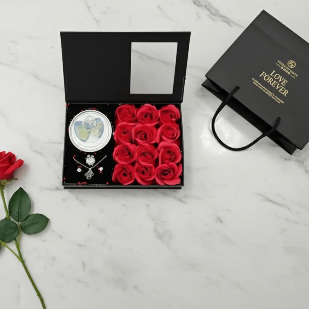 • 🎁 প্রিমিয়াম প্যাকেজিং – রোমান্টিক লাক্সারি গিফট বক্স, যা উপহার হিসেবে দেওয়ার জন্য একদম পারফেক্ট।