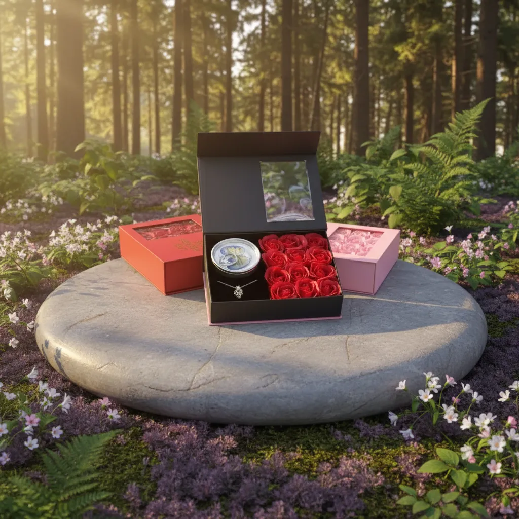 • 🎁 প্রিমিয়াম প্যাকেজিং – রোমান্টিক লাক্সারি গিফট বক্স, যা উপহার হিসেবে দেওয়ার জন্য একদম পারফেক্ট।